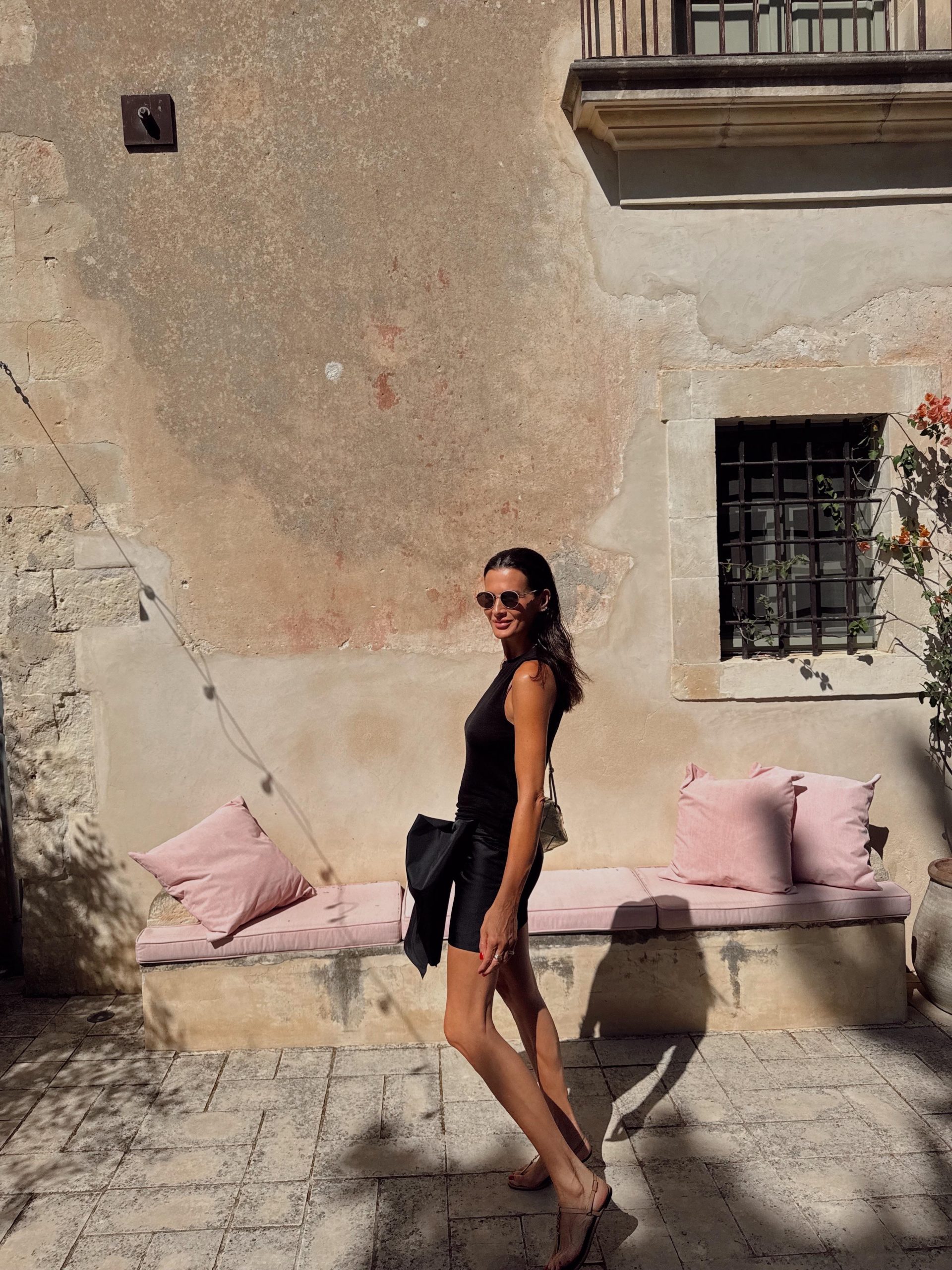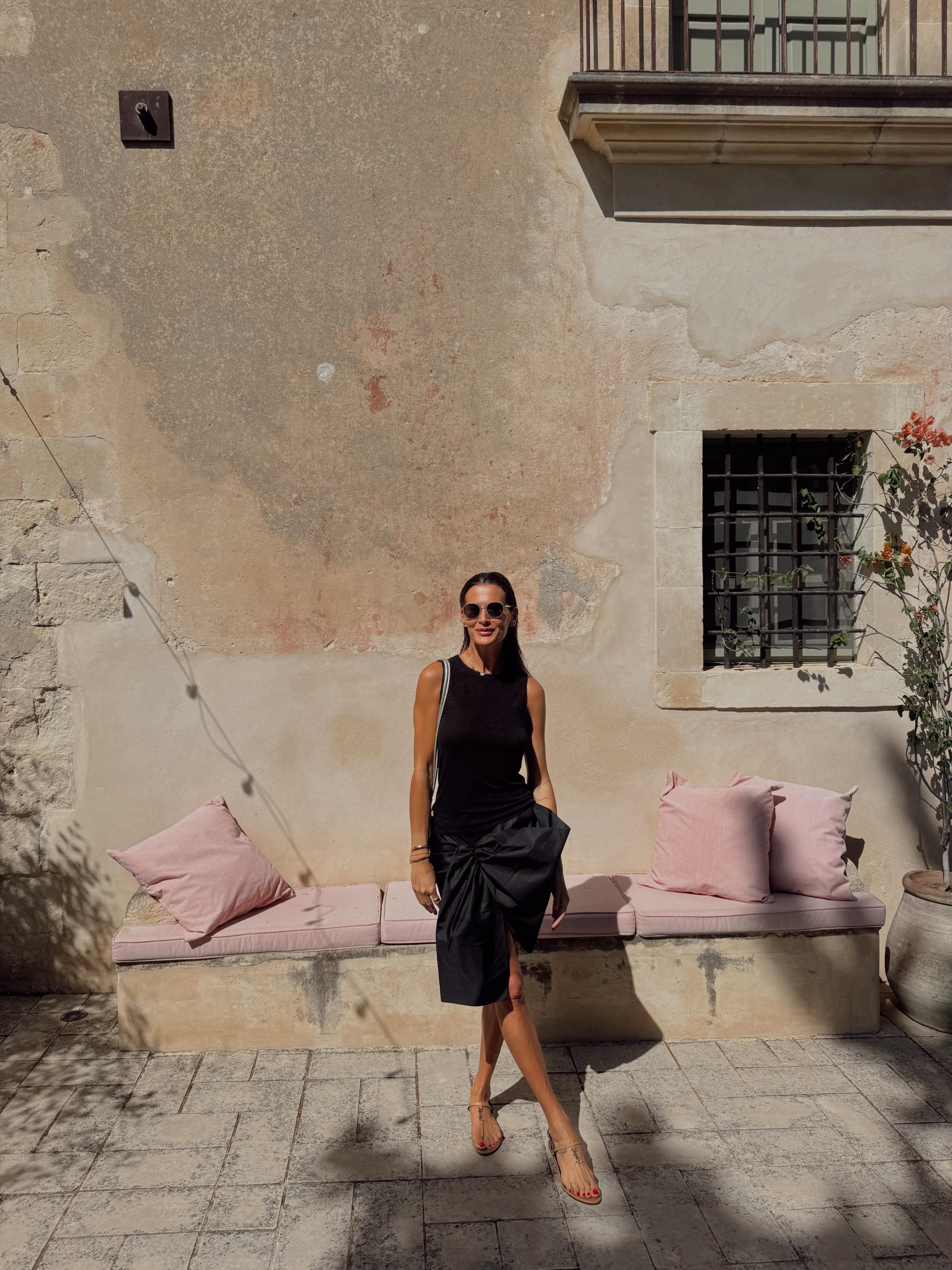 Fotografije, snimljene u ambijentu kamene terase s puderasto ružičastim akcentima, dodatno naglašavaju mediteranski vibe i chic estetiku koja u potpunosti rezonira s modnom filozofijom Ive Radić — manje je zaista više, ali uz pravi odabir, to “manje” može govoriti glasnije od bilo kojeg trenda.