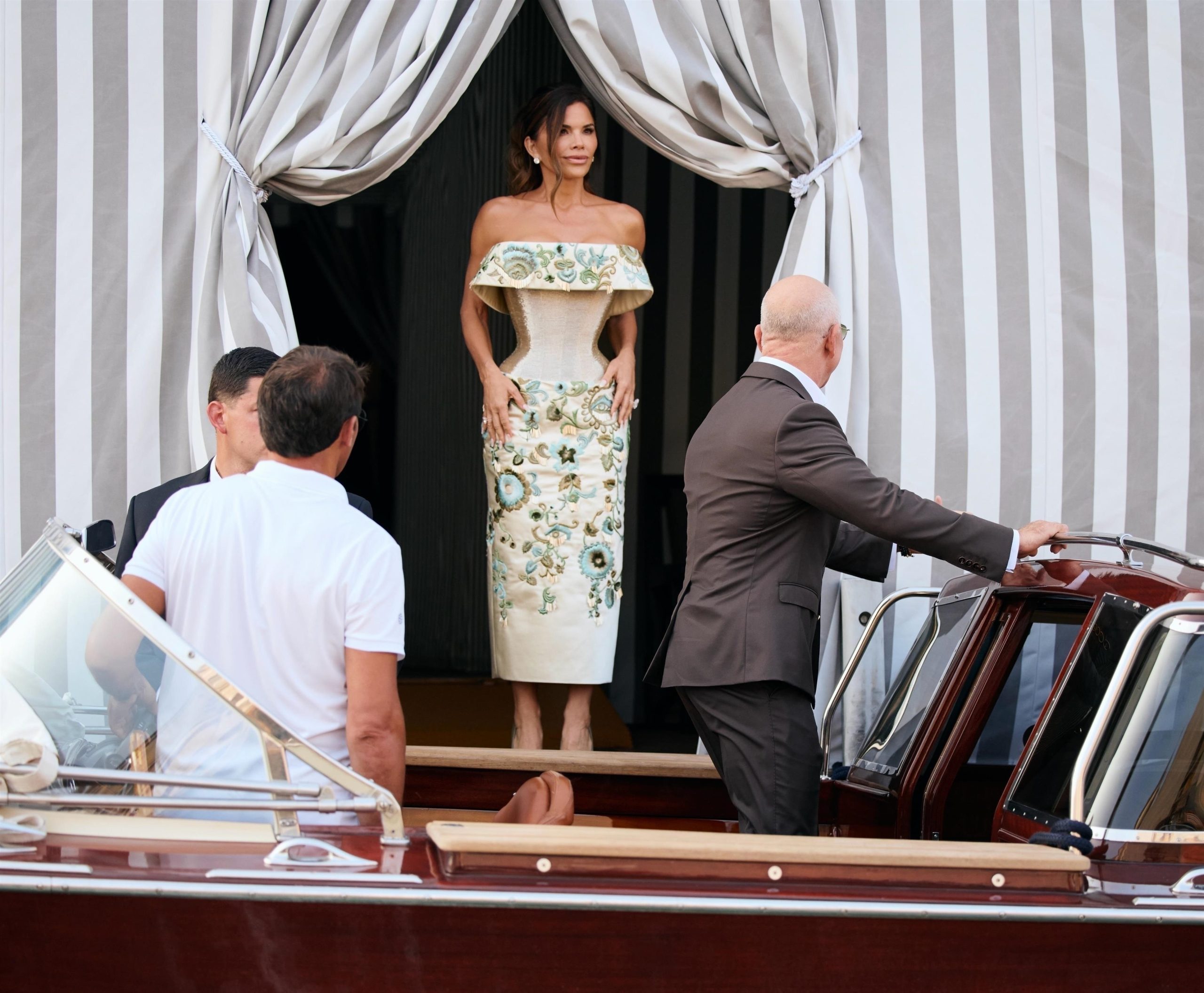 Detalji su, kao i uvijek, igrali ključnu ulogu. Zlatne metalik cipele savršeno su nadopunile haljinu, dok je visoki rep s nekoliko opuštenih pramenova uokvirio lice i naglasio dijamantne naušnice koje su reflektirale svjetla lagune poput minijaturnih zrcala.