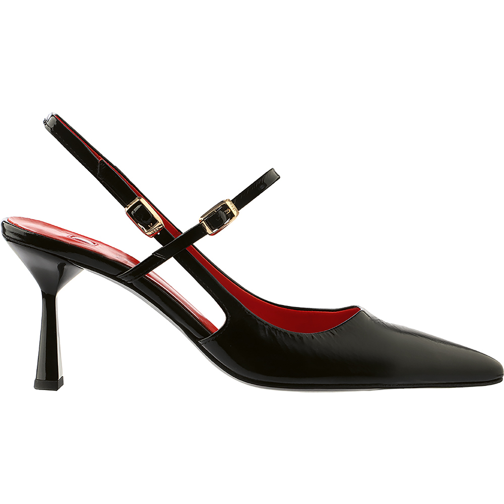 Crne salonke ostaju trajni simbol elegancije, a Högl ih u modelu Scarlett reinterpretira kroz profinjene detalje i suvremenu siluetu. Otvorena peta, nježni remenčić i čista linija stvaraju dojam suptilnog samopouzdanja, dok crvena kožna podstava donosi diskretan, ali zavodljiv kontrast koji podiže cijeli dizajn. Inovativni Softline ulošci osiguravaju iznimnu udobnost, a pismo torba Doreen zaokružuje večernji look koji je istodobno klasičan i suvremen.