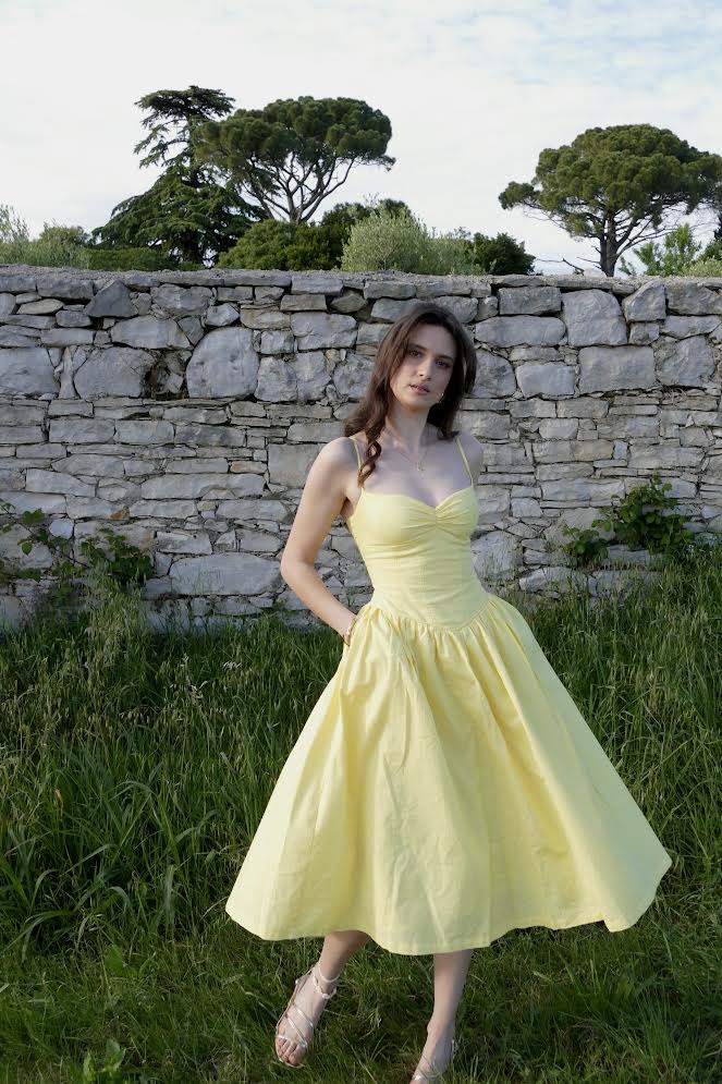 A kad večer padne i poželite nešto što će vas obgrliti poput povjetarca – tu je haljina Lemon. S krojem koji prati liniju tijela, korzetnim detaljem i bojama koje prizivaju mirise limuna i mora, ona postaje vaš saveznik u najposebnijim trenucima ljeta.