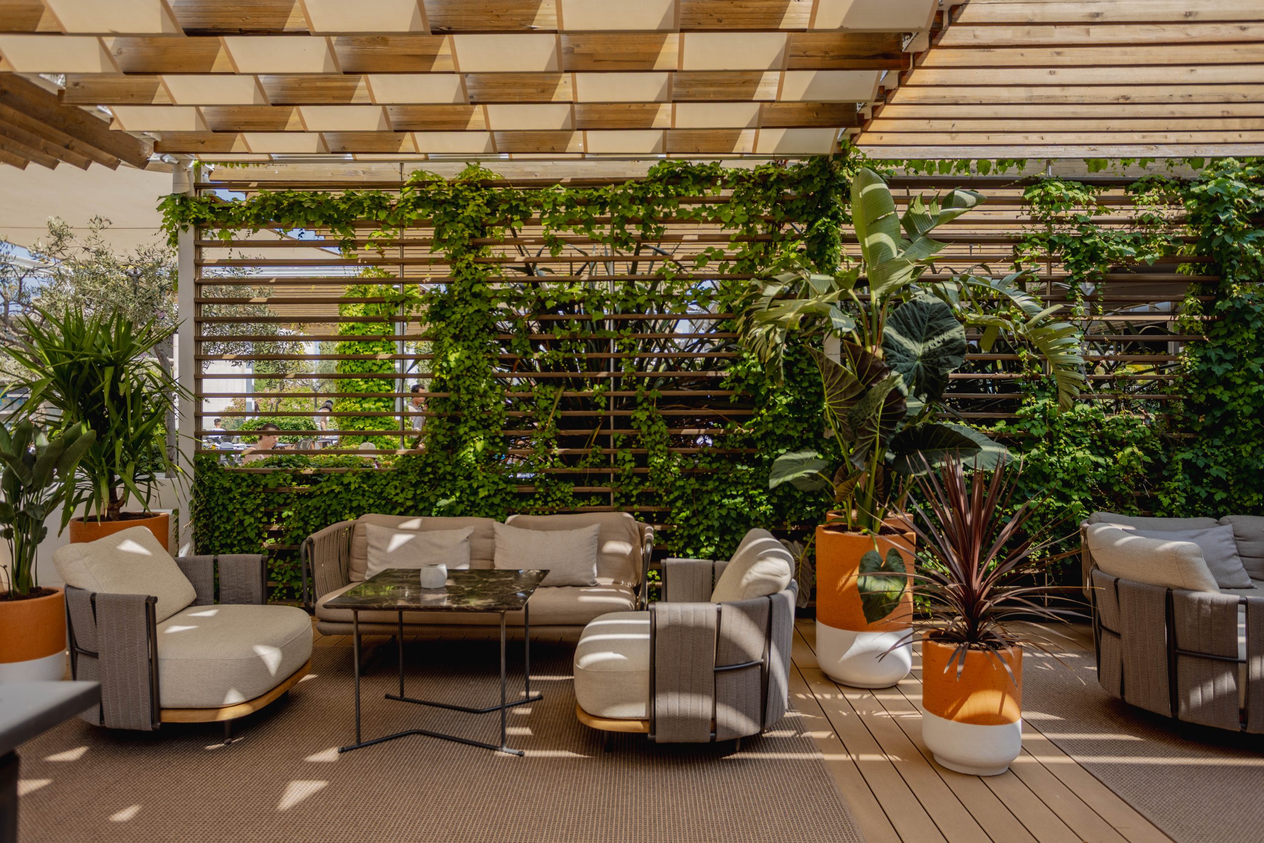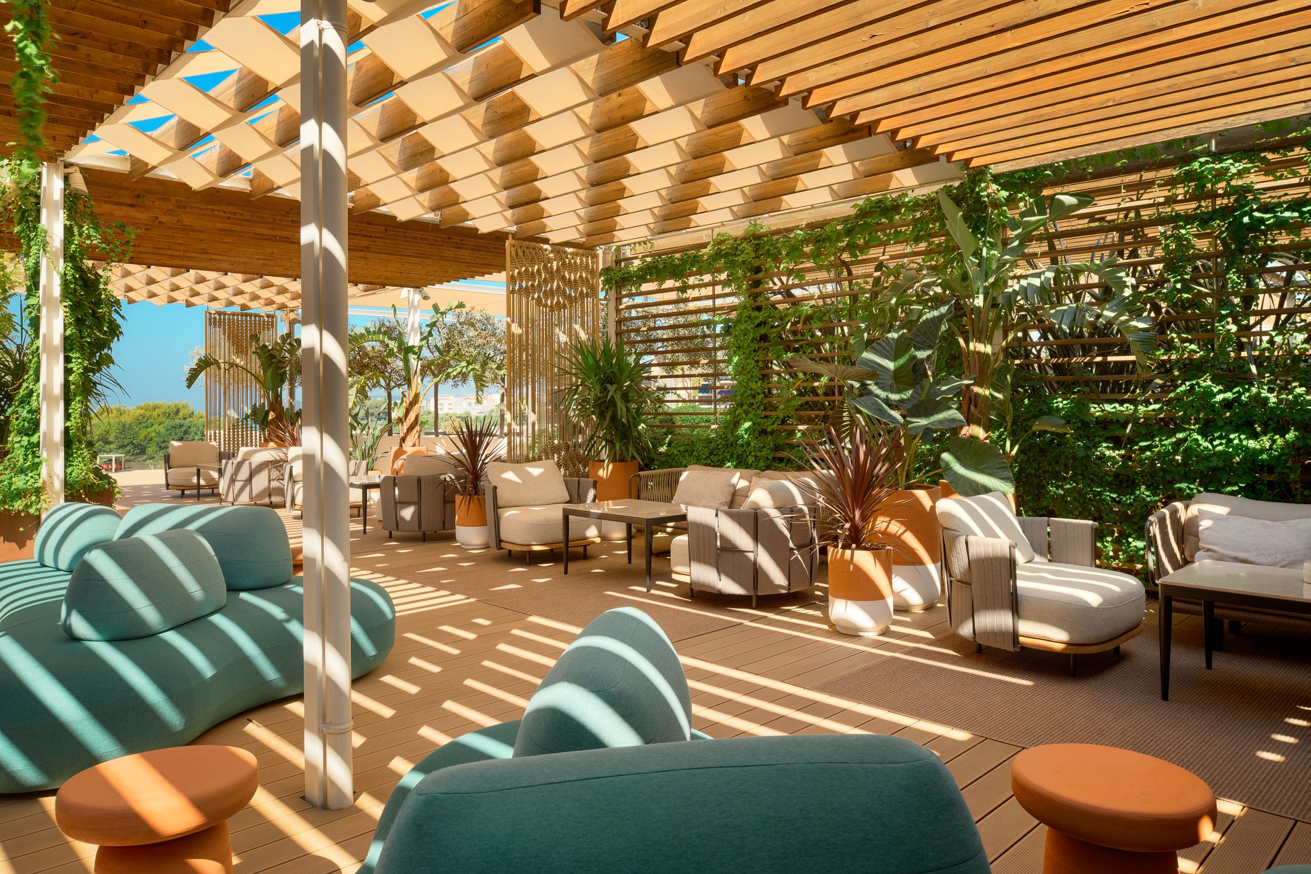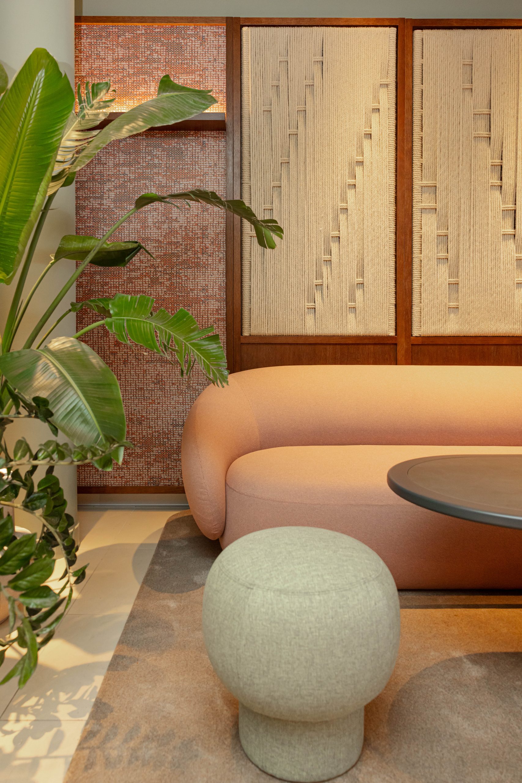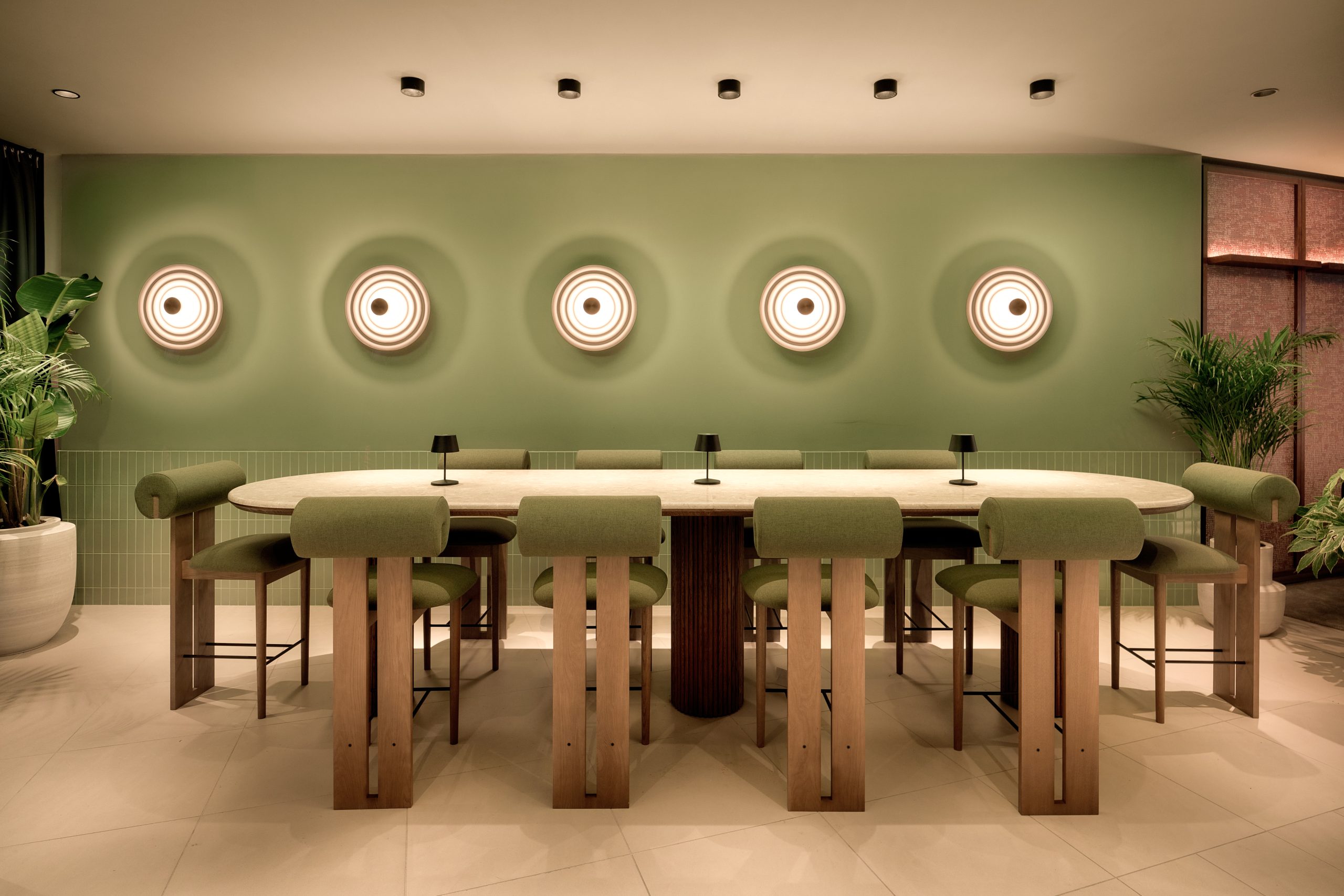 Ono što MINT Bar čini posebnim jest njegova dinamična funkcionalnost – nije riječ samo o baru, već o dnevnom boravku s pogledom. Tu su različiti tipovi sjedenja – od udobnih niskih kutaka do visokih stolova za brze razgovore uz espresso, te dva šanka: jedan klasičan, za večernje sate, i drugi, niži, izrađen od monolitnog kamena, koji poziva na opuštanje tijekom dana. Cijeli bar zamišljen je kao “otok” – centralno mjesto susreta, žarišna točka društvenosti unutar luksuznog resorta.