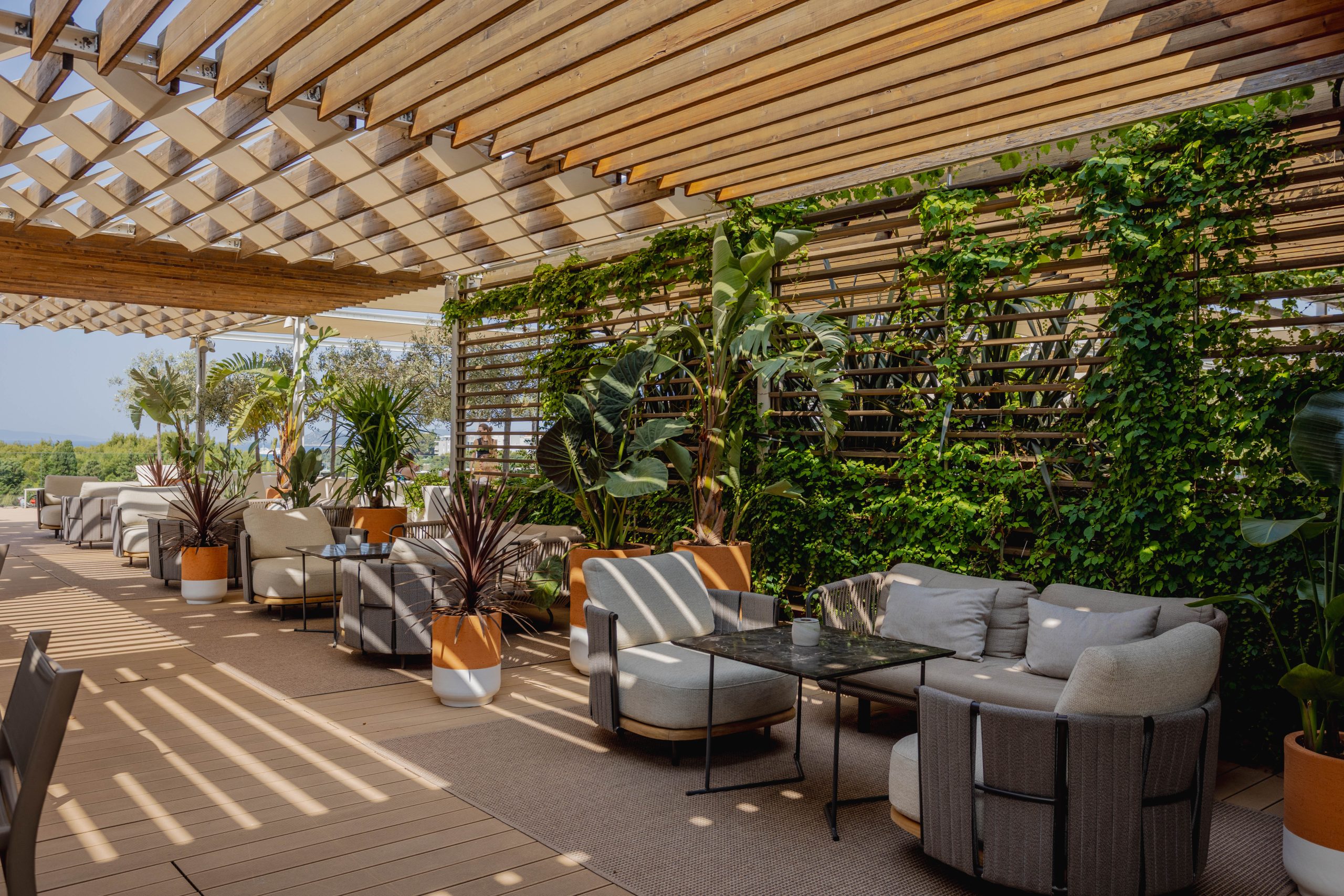 MINT Bar je dizajniran da očara, ali i umiri. Arhitektonski tim AKSL arhitekti osmislio je prostor koji doslovno diše s morem – lagan, prirodan, topao i otvoren, baš poput dalmatinskog mentaliteta koji mu je poslužio kao inspiracija. Korištenje lokalnog kamena, prirodnog drva, recikliranih materijala i umjetnički oblikovanih užadi daje prostoru notu bezvremenske elegancije i taktilne mekoće. Ništa ovdje nije slučajno – svaki detalj osmišljen je da pozove, da zadrži pogled i stvori osjećaj pripadnosti.